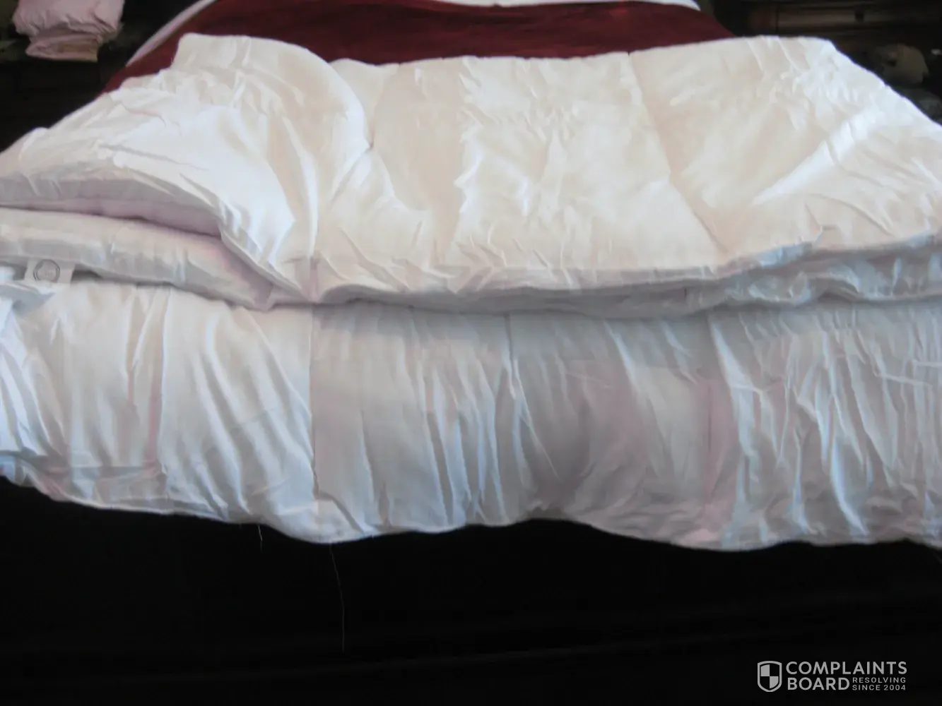 As I unfolded the comforter on my bed I saw several snags and tears on it so I photographed the damages of the defective product for you to see.