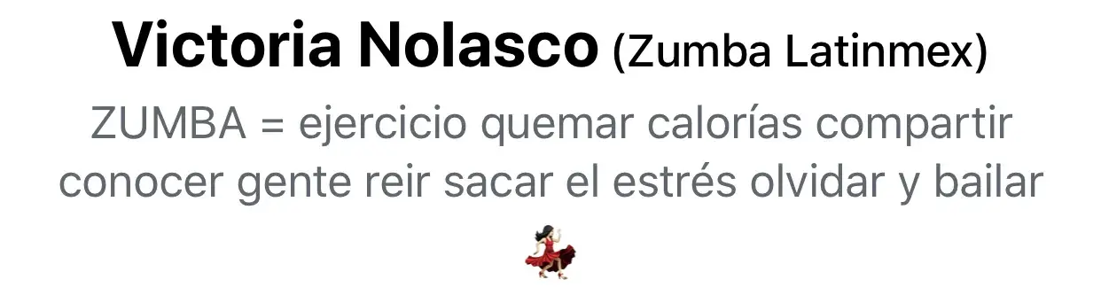 Zumba instructor victoria Nolasco has been very possessive over her clients (students) not wanting them to go to other Zumba instructors and bullies them into staying in her class only!!! I am one of her victims!!! She did not make me feel very welcomed and I felt very uncomfortable in her classes she has preference over her friends and made me feel not...