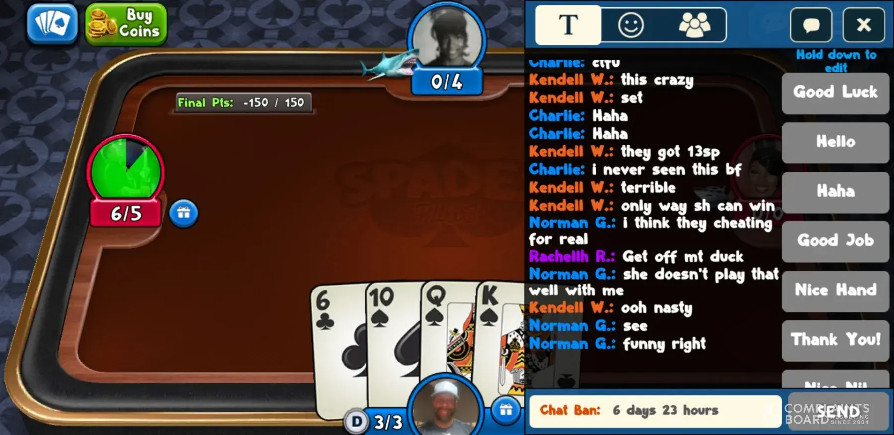Read full complaintGin rummy plus is cheating I would like something done about it