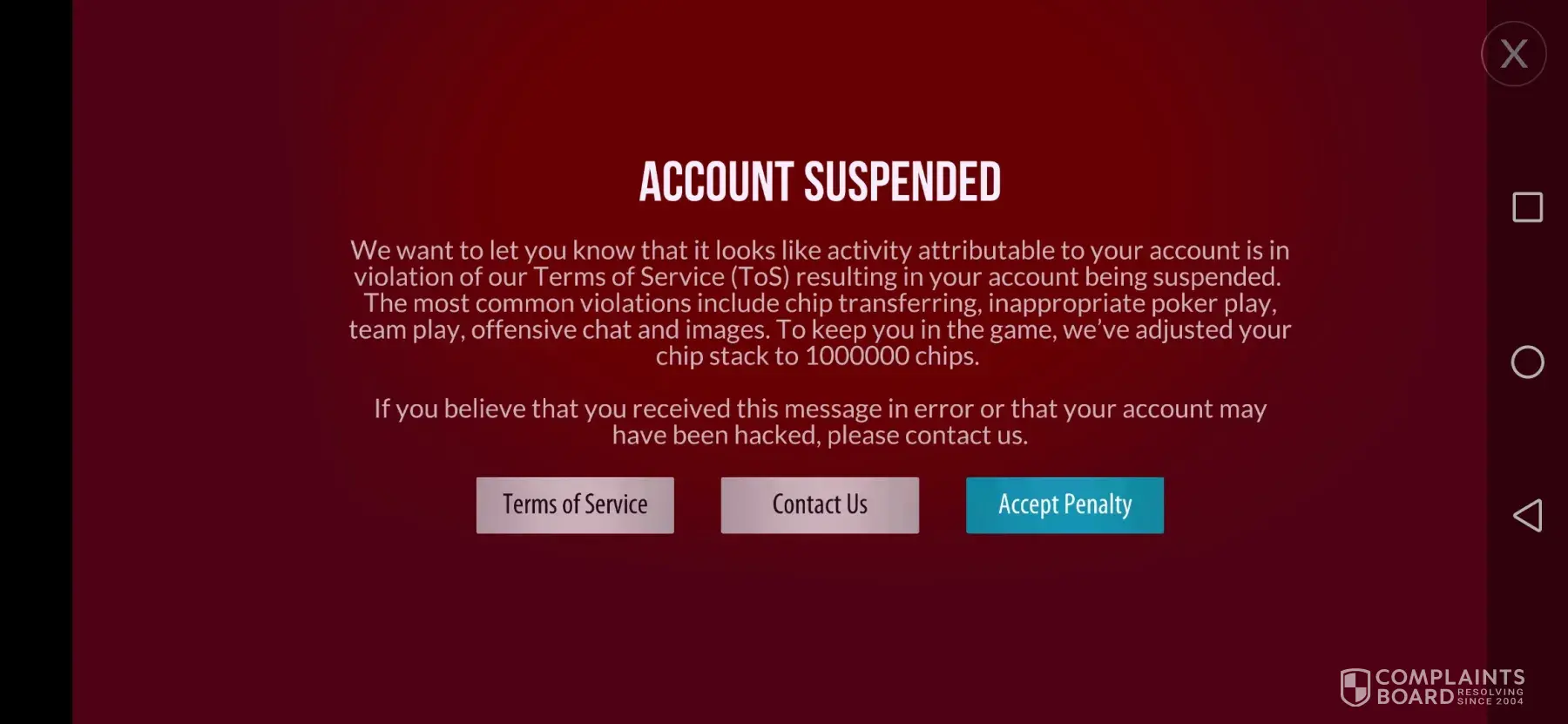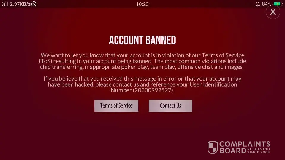 Zynga My account was banned. My chip also gone 330t in my account