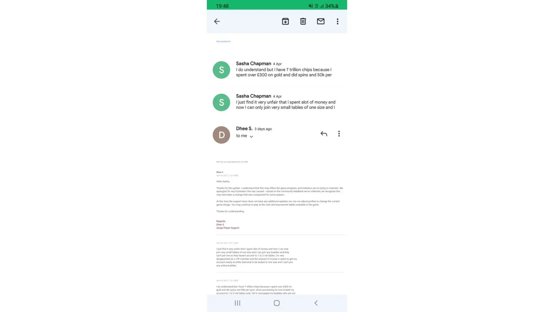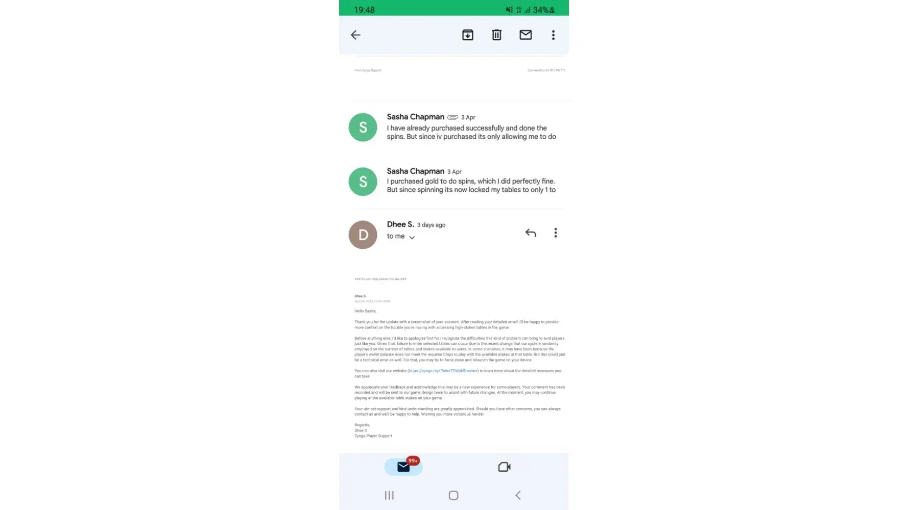 Dear Zynga Poker Support Team,