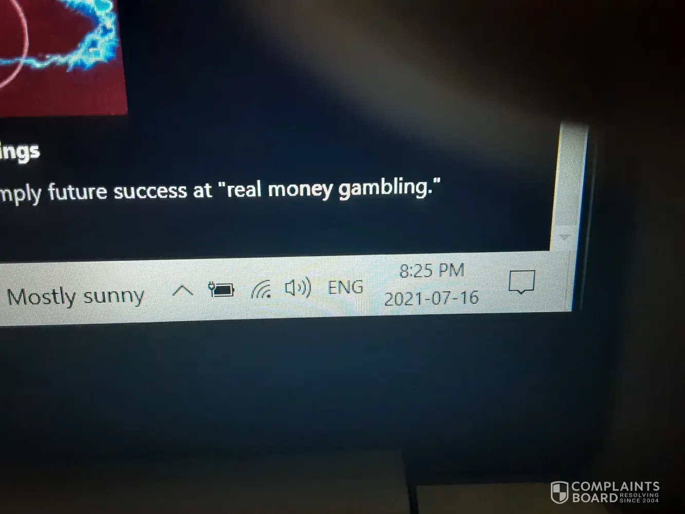 Desired outcome: That one fifth of his total winning be removed from his account and awarded to the injuredo the injured party