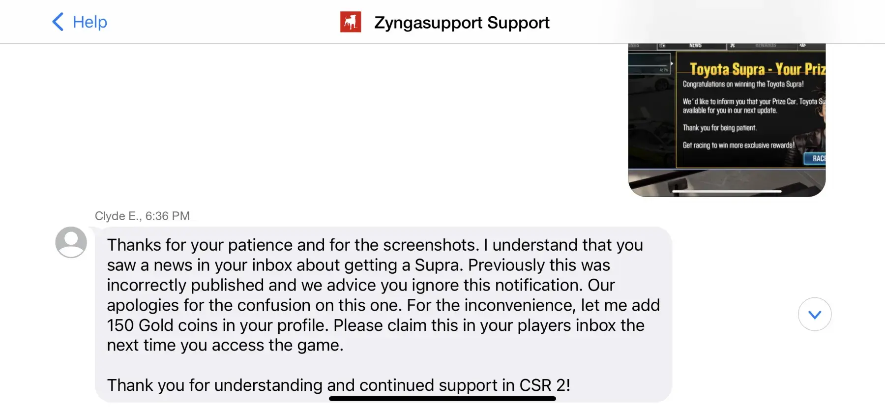 Desired outcome: Acknowledgement from Zynga